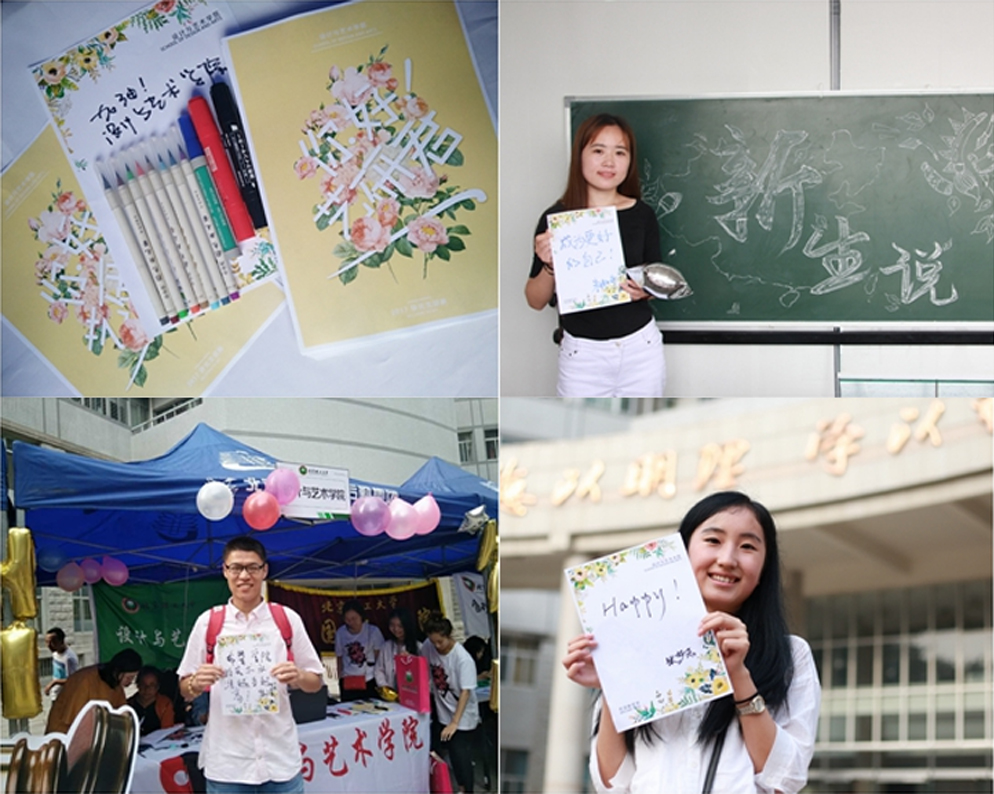 为了记录新生入学这一富有意义的时刻,设计学院为新生设计了精美的留言卡,每位新生在卡片上书写了入学第一天的美好展望并合影留念。