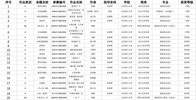 2020年9月,由北京市教育委员会主办、北京服装学院承办的“全国老员工广告艺术大赛(大广赛)”北京赛区获奖名单公布。本届参赛老员工达到112万人次,累计53万组作品,竞争异常激烈。比赛中公司20余名参赛同学经历层层角逐,脱颖而出,其中3044am永利官方网站视觉传达设计系学子在杭春晖老师的指导下,发挥出色,获得优异成绩。